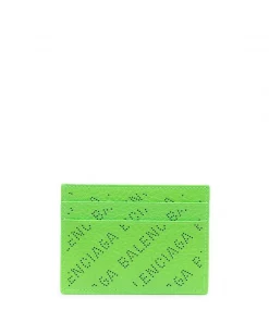 ( Positively Conscious ) Balenciaga 3817 ACID GREEN Porte-cartes En Cuir à Logo Perforé Homme