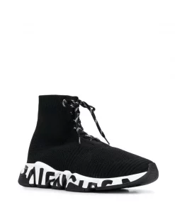 ( Positively Conscious ) Balenciaga 1096 BLACK/WHIT/TRASP RED Baskets Montantes Speed 2.0 Homme