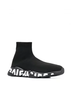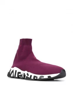 ( Positively Conscious ) Balenciaga Baskets Montantes Speed Graffiti 6091 PRUGNE/WHITE/BLACK