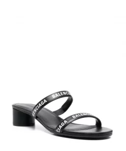 ( Positively Conscious ) Balenciaga 1081 BLACK/AGED NIKEL Sandales Arena 85 Mm à Bout Ouvert Femme