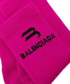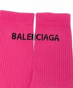 ( Positively Conscious ) Balenciaga 5660 FUXIA/BLACK Chaussettes Nervurées à Logo En Intarsia Femme