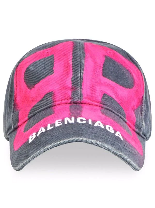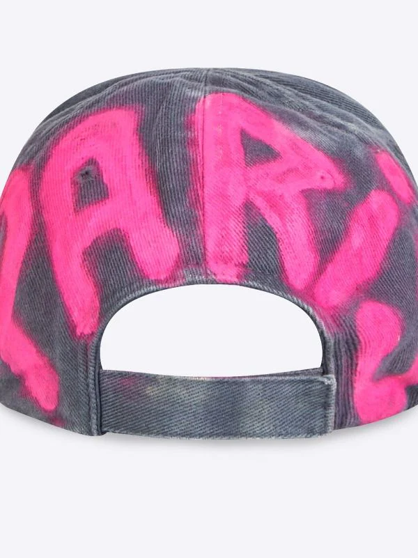 Gris, rose fluorescent, coton, bord large incurvé, imprimé graffiti, imprimé BB, fermeture à boucle à l’arrière.