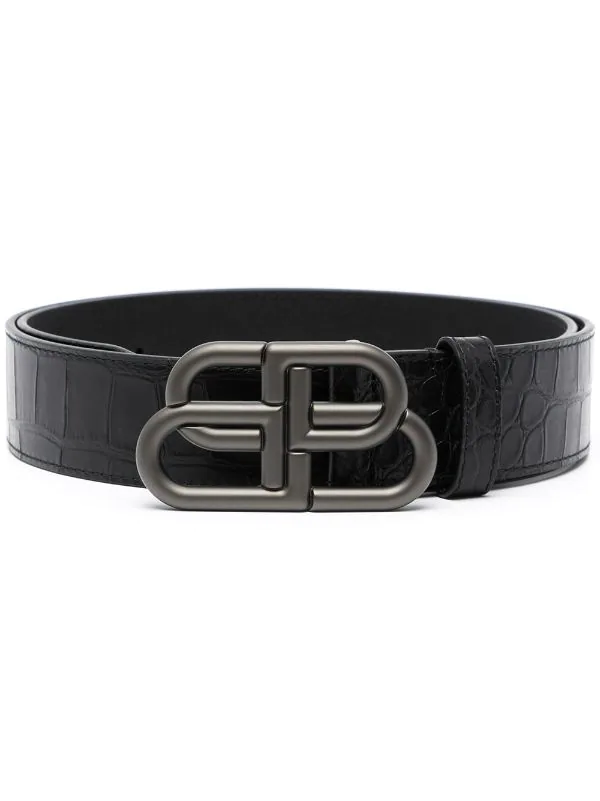 Effet peau de crocodile, fermeture à boucle logo, taille ajustable. Couleur : noir. Matière : cuir.