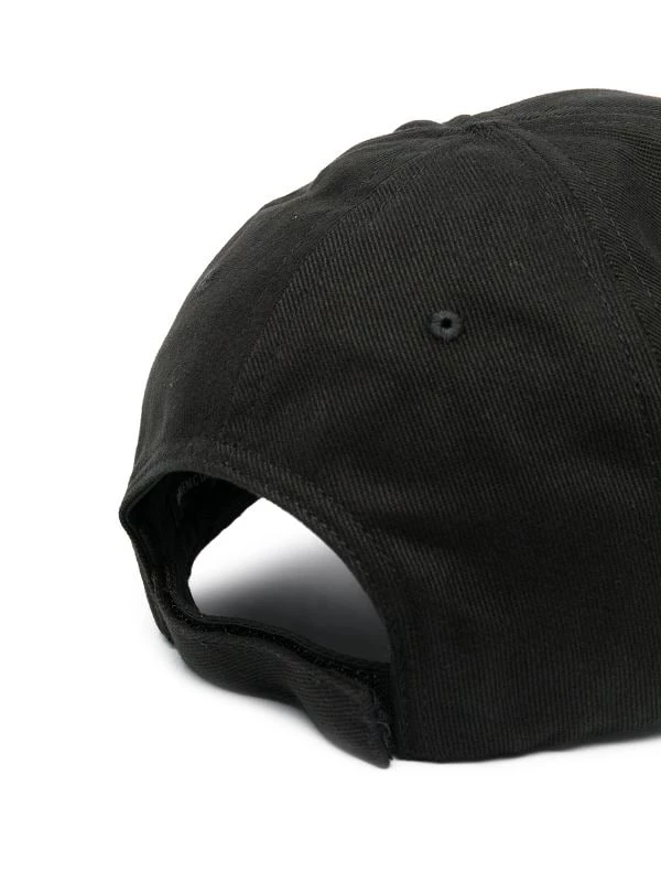 Logo brodé sur le devant, design à six empiècements, bord incurvé, fermeture scratch à l’arrière. Couleur : noir. Matière : coton.