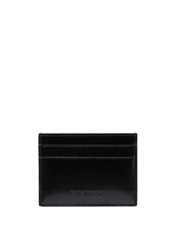Logo embossé, fini poli, fentes pour carte, compartiment à billets. Couleur : noir. Matière : cuir.