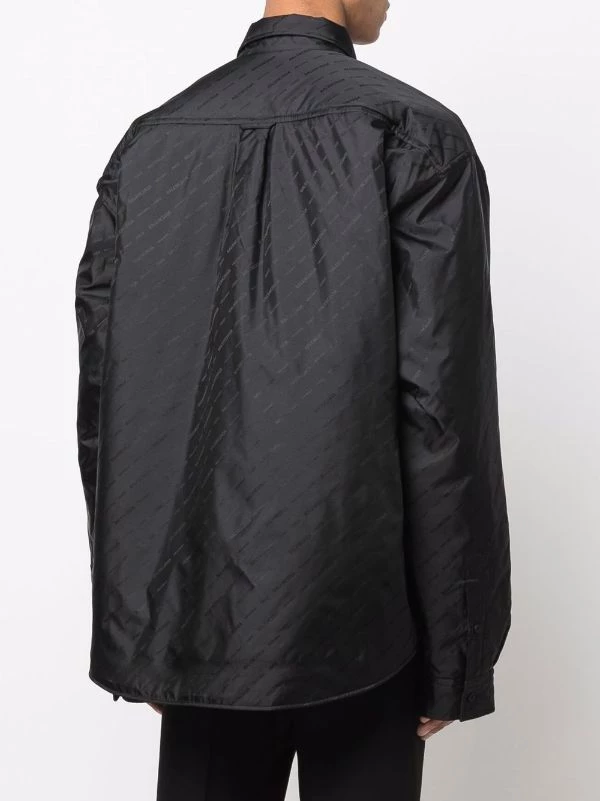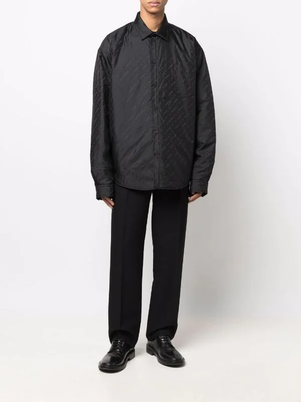 Design matelassé, imprimé monogrammé, col classique, boutonnière sur le devant, manches longues, poignets boutonnés, ourlet incurvé. Couleur : noir.