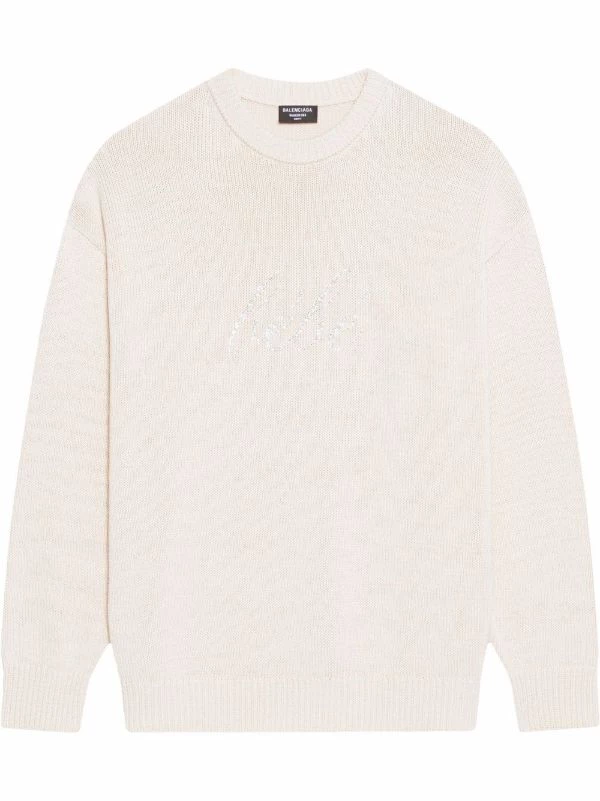 Slogan brodé, bord en maille côtelée, design en maille, encolure ronde, épaules tombantes, manches longues, ourlet droit. Matière : coton.