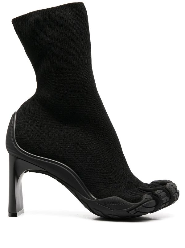 Design à enfiler, cheville élastiquée façon chaussette, coupe stretch, semelle en caoutchouc, talon sculpté haut. Couleur : noir.