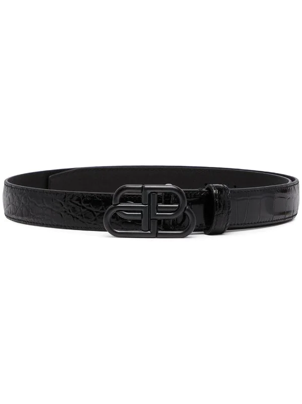 Effet peau de crocodile, fermeture à boucle, taille ajustable, coutures ton sur ton. Couleur : noir.