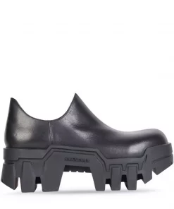 Bout rond, design à enfiler, semelle intérieure à logo, semelle à plateforme. Couleur : noir. Matière : cuir de veau.