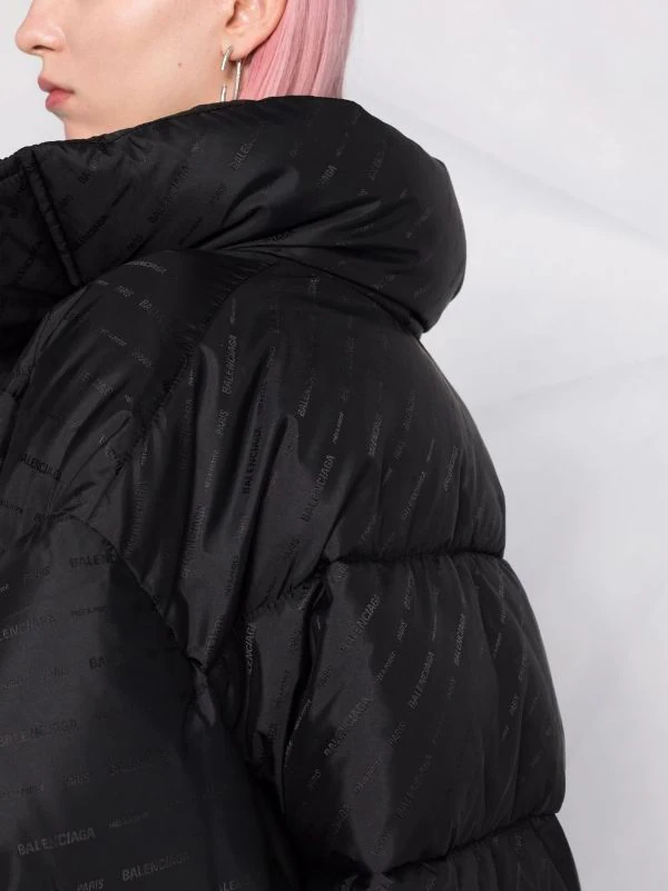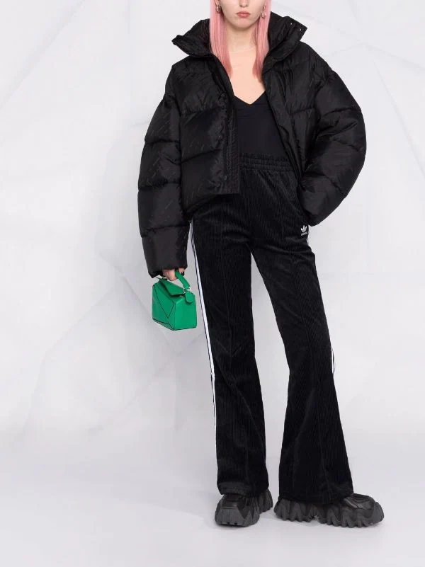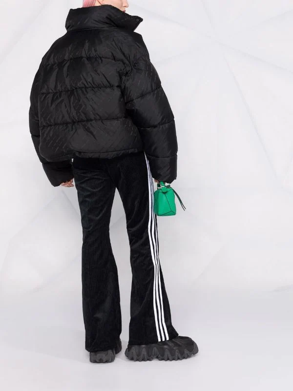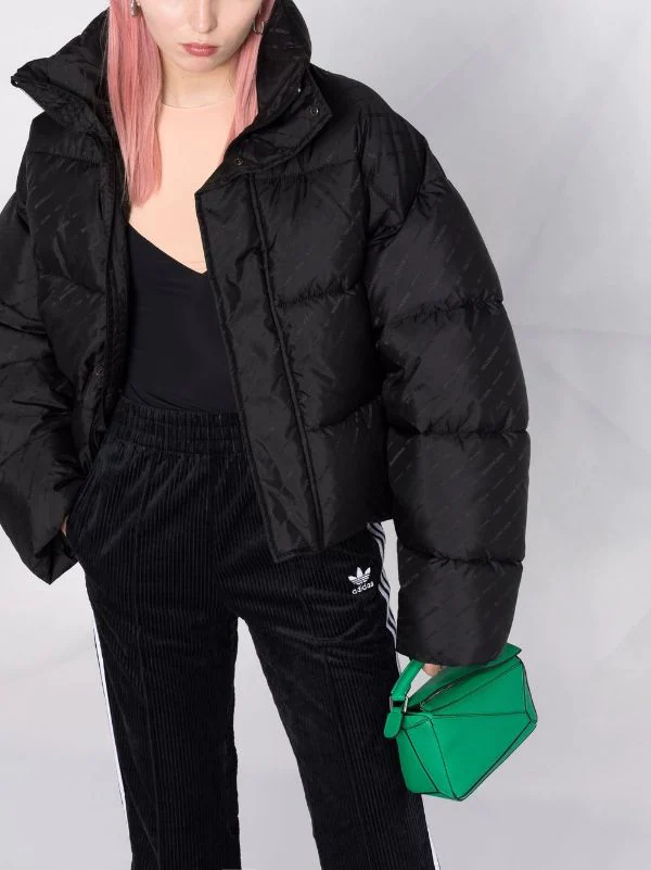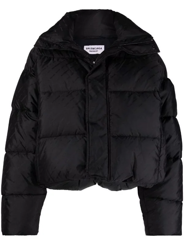 Col cheminée, fermeture dissimulée sur le devant, manches longues, imprimé monogrammé. Couleur : noir.