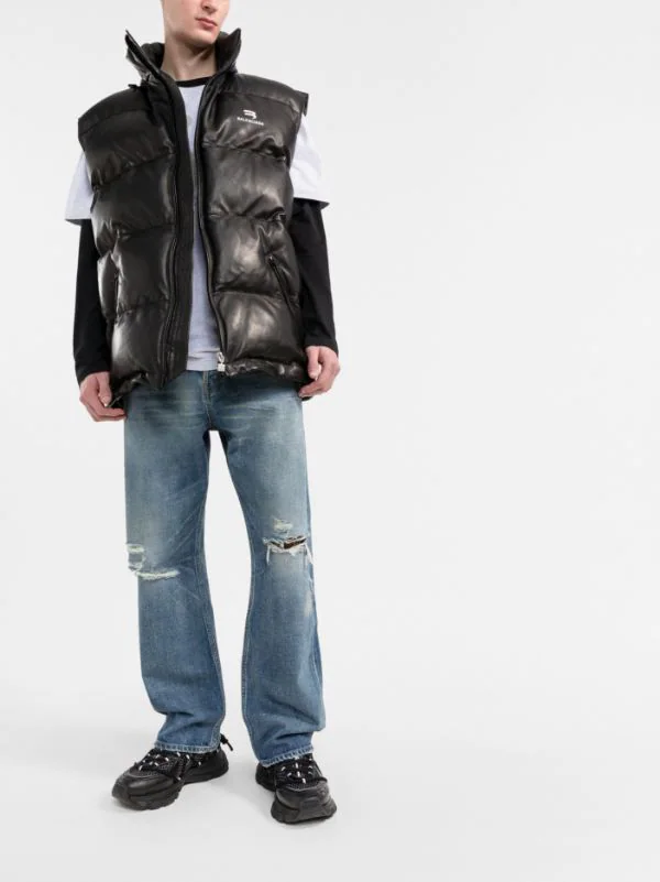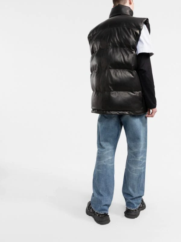 Patch poitrine à logo, col montant, design matelassé, design sans manches, fermeture zippée devant, ourlet droit, deux poches latérales zippées. Couleur : noir.