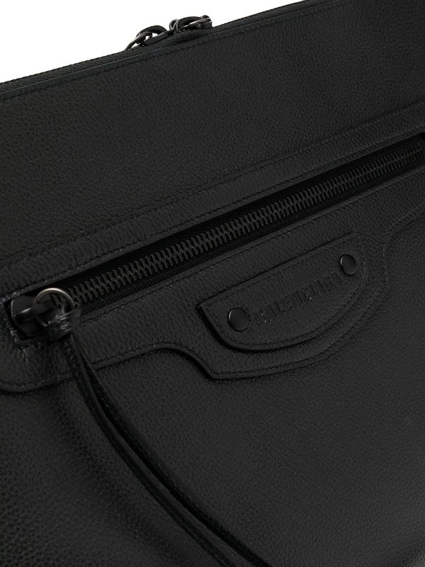 Patch logo sur le devant, forme rectangulaire, poches à fermeture zippée devant, fermeture zippée sur le dessus. Couleur : noir. Matière : cuir.