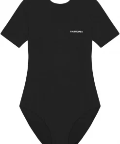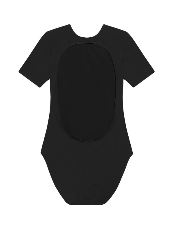Logo imprimé à la poitrine, encolure ronde, manches courtes, dos-nu. Couleur : noir. Veillez à essayer les maillot de bain par-dessus vos propres sous-vêtements.