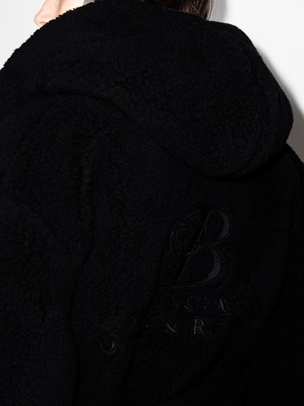 Logo brodé à l’arrière, capuche classique, taille ceinturée, manches longues. Couleur : noir.