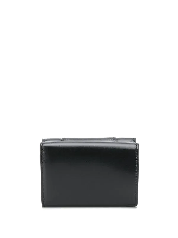 Logo doré, fermeture à boutons pression, compartiment à billets, compartiments intérieurs pour carte, logo imprimé à l’intérieur. Couleur : noir. Matière : cuir.