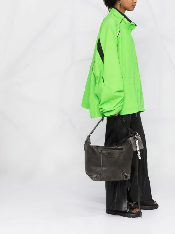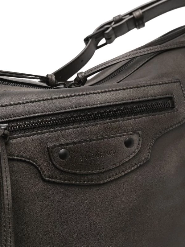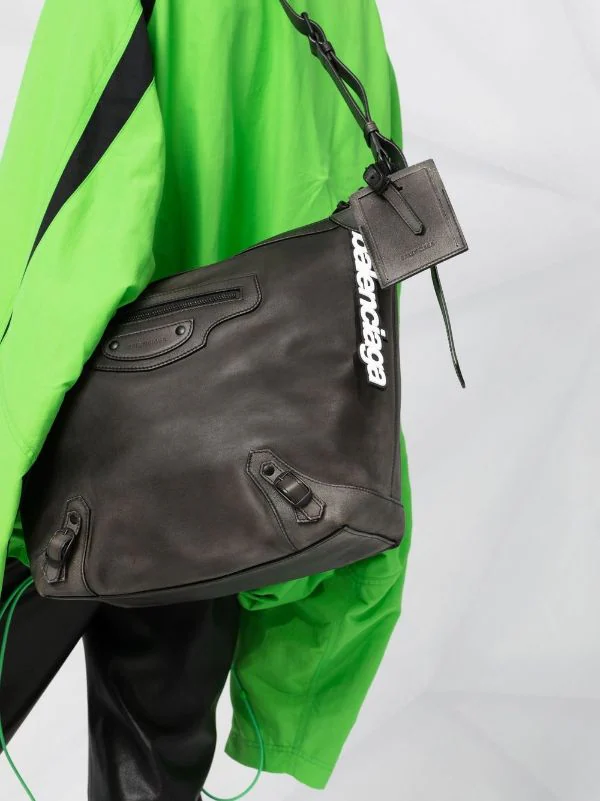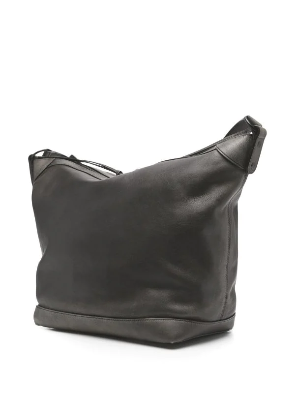 Noir, cuir, bride porté épaule ajustable, étiquette logo, compartiment unique pour carte, poche zippée sur le devant, logo embossé sur le devant, finitions à boucle décorative, fermeture zippée sur le dessus, compartiment principal, poche intérieure zippée, patch logo intérieur.
