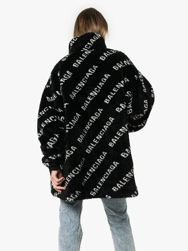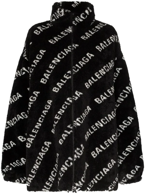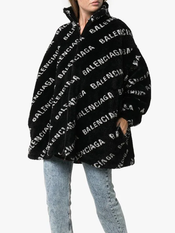 Veste Oversize en Polaire à Logo Balenciaga avec col montant, fermeture zippée devant, manches longues et poches latérales fendues. Couleur : noir.