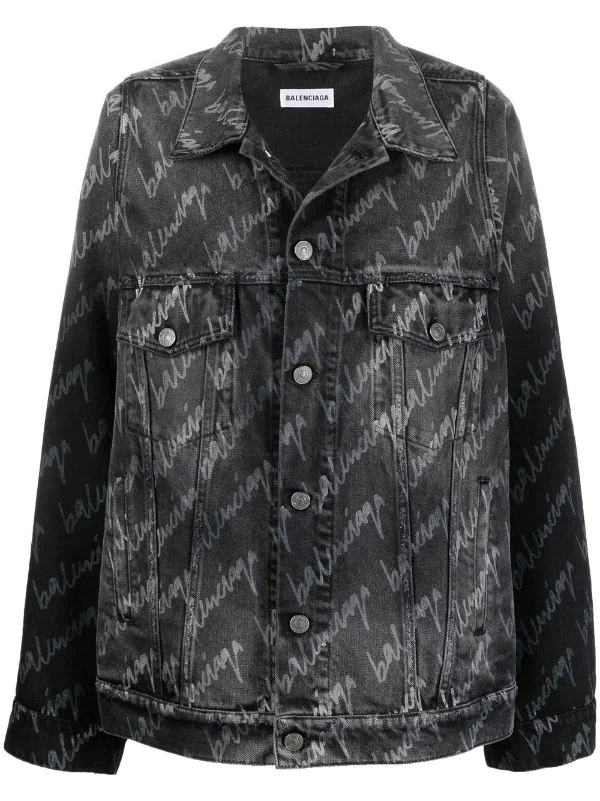 Noir, coton mélangé, effet délavé, imprimé monogrammé, patch logo sur l’arrière, col pointu plat, boutonnière sur le devant, deux poches poitrine à rabat, manches longues évasées, manches longues, poignets boutonnés, ourlet droit.