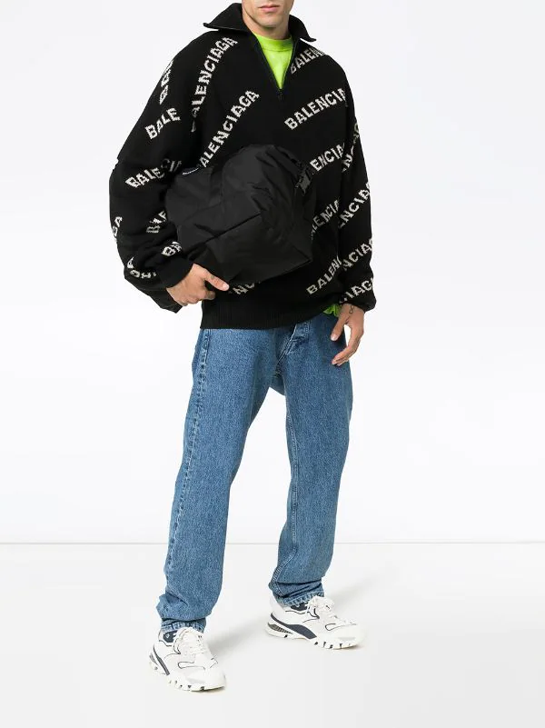 Design bicolore, manches longues et logo all-over. Couleur: noir. Matière: laine vierge et poil de chameau.