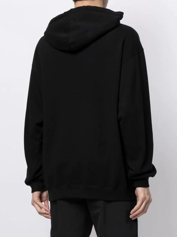 Capuche à lien de resserrage, logo imprimé sur le devant, manches longues, poignets nervurés, ourlet nervuré. Couleur : noir. Matière : coton.