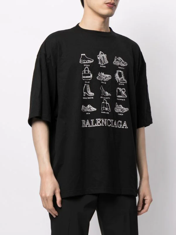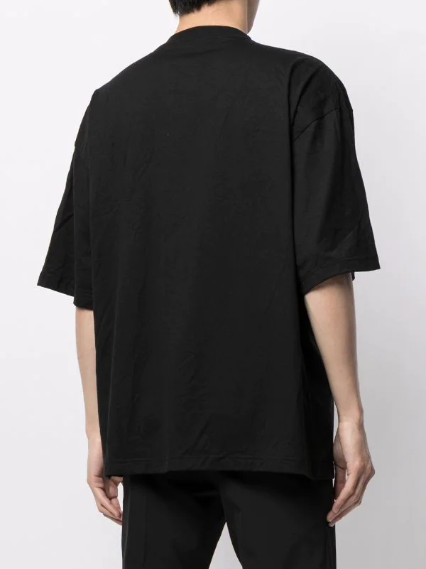 Imprimé graphique, logo imprimé sur le devant, encolure ras du cou, manches courtes, effet d’épaules descendues, ourlet droit.