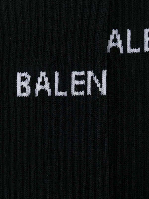 Chaussettes à logo intarsia en COTON MÉLANGÉ Balenciaga avec bout rond, coupe stretch, design nervuré et longueur mi-mollet. Couleur: Black and white. Les chaussettes et la bonneterie doivent être retournés dans leur emballage d’origine.