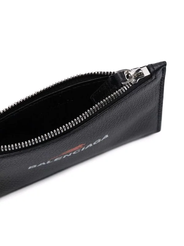 Logo lettre, texture grainée, fermeture zippée sur le dessus, fentes pour cartes à l’arrière, bride porté poignet. Couleur : noir. Matière : cuir.