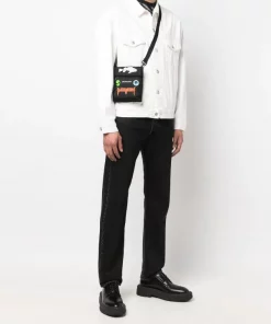 Rabat sur le dessus, logo embossé sur le devant, fentes pour carte. Matière : cuir.