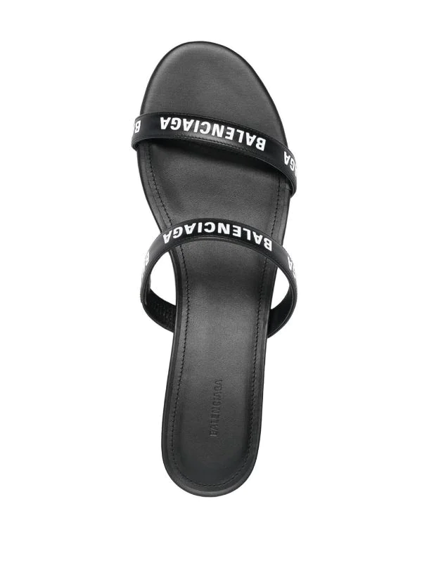 Logo imprimé sur le devant, design double-tour, bout ouvert, talon ouvert. Matière : cuir.