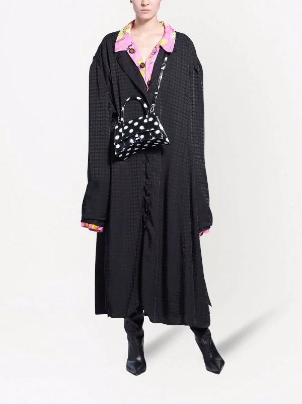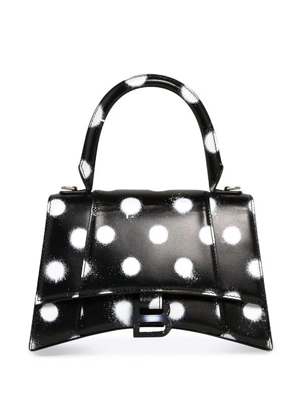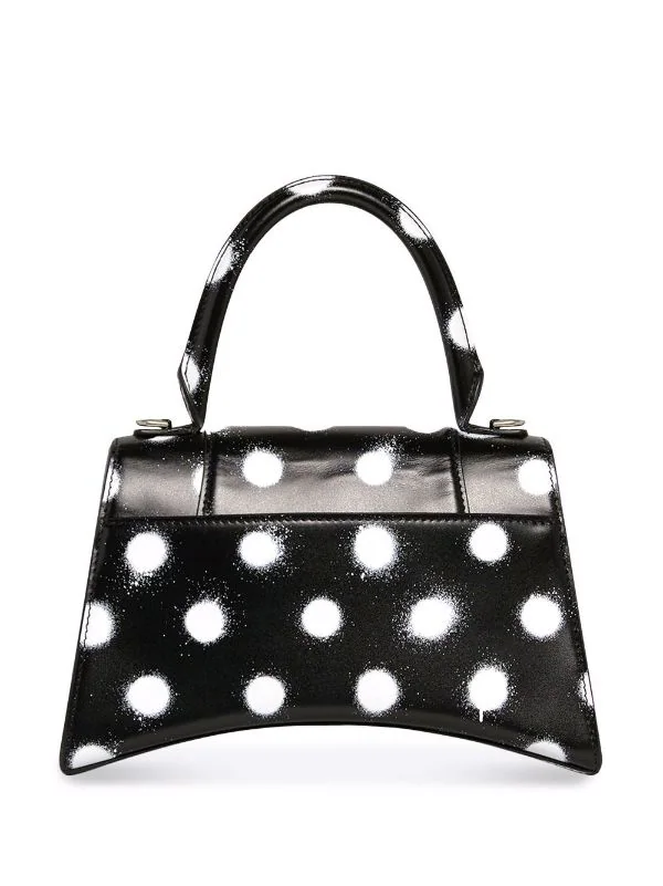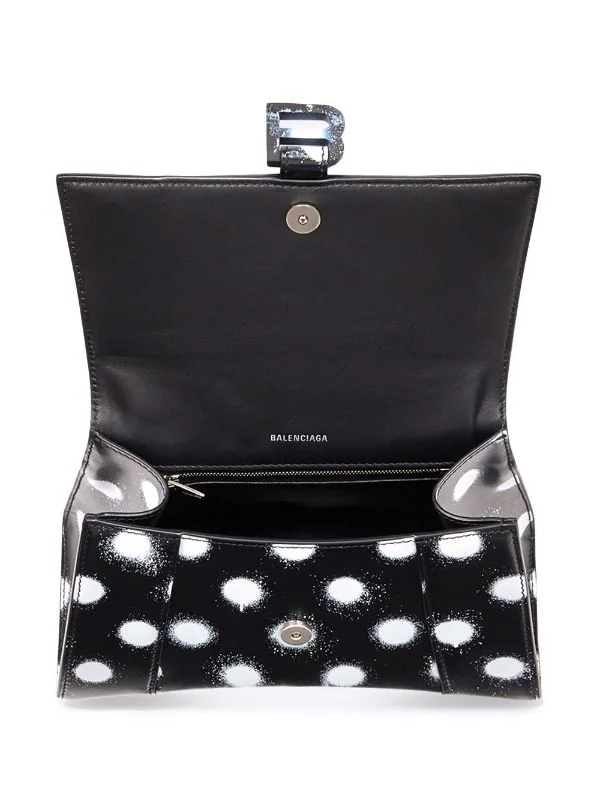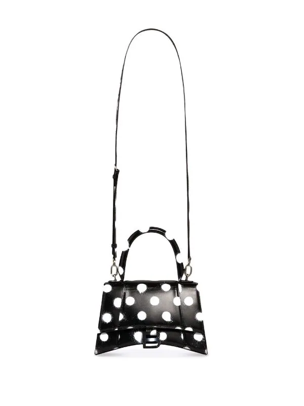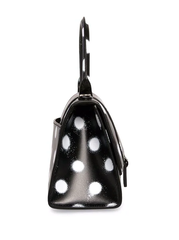 Imprimé à pois, plaque logo, anse arrondie, bride porté épaule détachable et ajustable, rabat sur le devant, fermeture magnétique, compartiment principal, poches intérieures zippées. Matière : cuir.