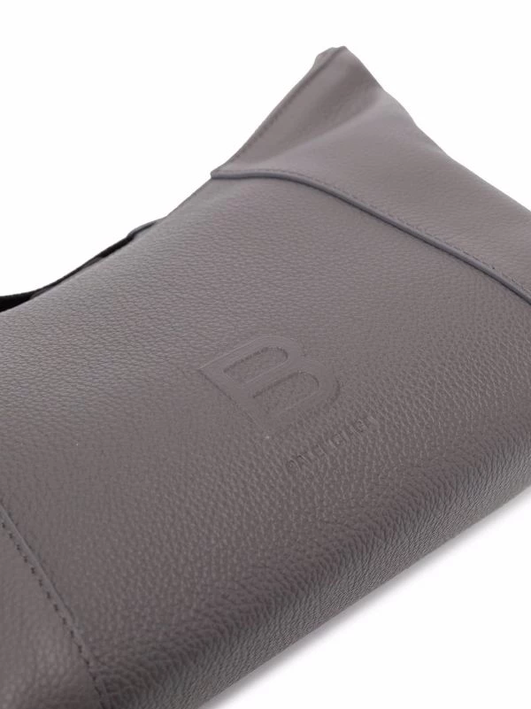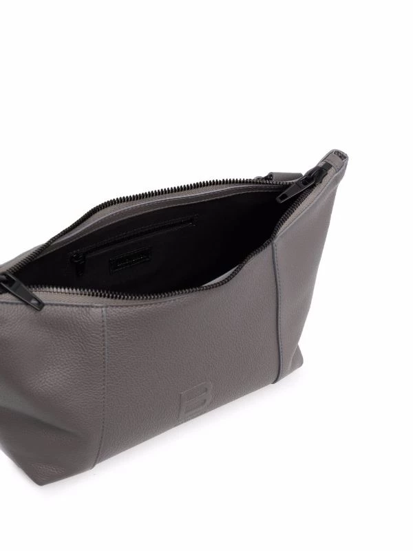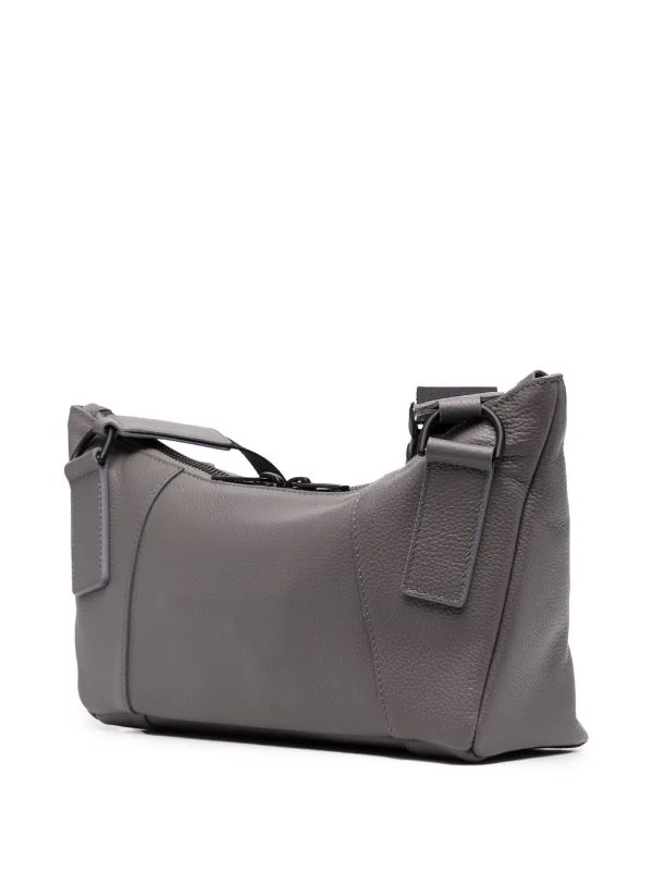 Texture grainée, logo embossé sur le devant, logo embossé sur le devant, fermeture zippée à double sens, bride porté épaule ajustable, compartiment principal, poche intérieure zippée. Matière : cuir.