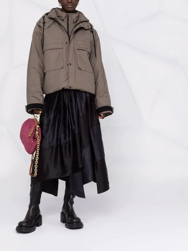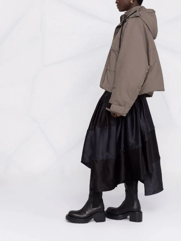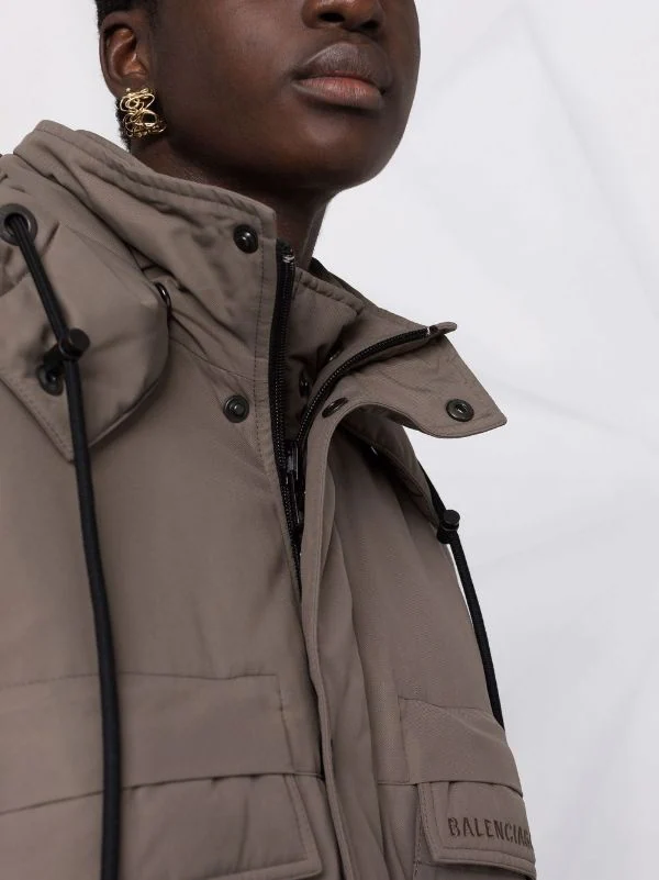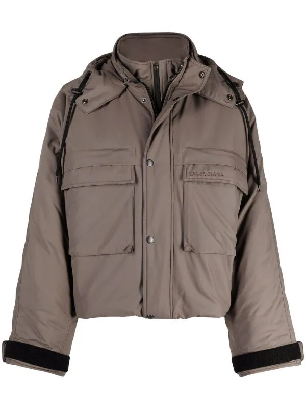 Capuche à lien de resserrage, fermeture à zip et boutons sur le devant, manches longues, deux poches à rabat sur le devant.
