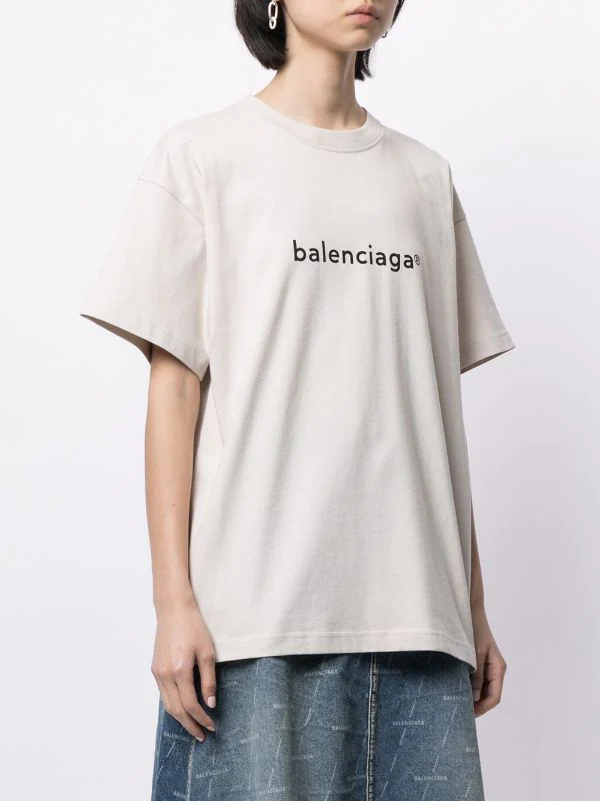 Logo imprimé sur le devant, encolure ras du cou, effet d’épaules descendues, manches courtes. Matière : coton.