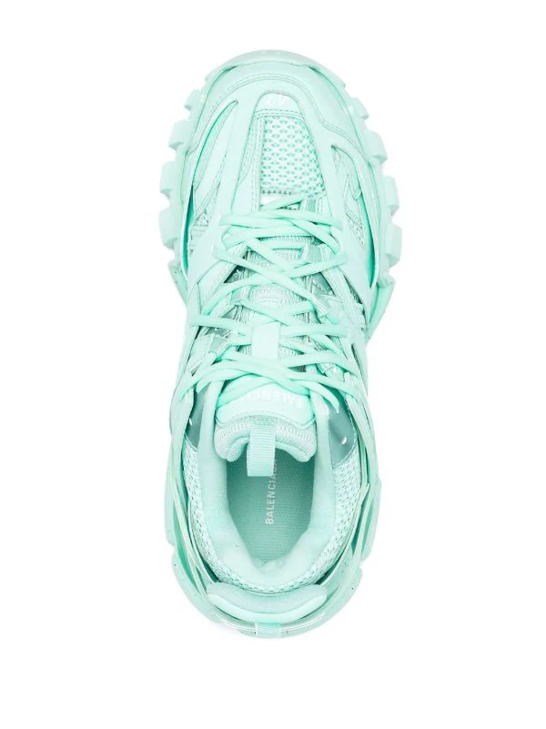Vue pour la première fois dans la saison AH21 de Balenciaga, les baskets Track a d’abord été introduite pour rivaliser avec la conception Triple S de la maison, déjà très vendue. Un succès immédiat, le design à empiècements en mesh superposés inspiré du streetwear a depuis été réinventé dans une variété de matériaux et de coloris, y compris cette version non-cuir vert menthe.
