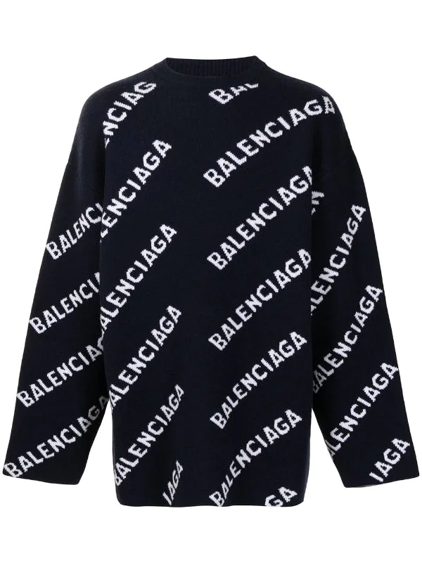 Imprimé monogrammé, maille intarsia, encolure ronde, manches longues.