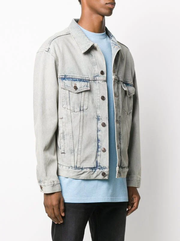 Veste en denim à logo imprimé en coton Balenciaga avec col classique, boutonnière sur le devant, deux poches poitrine et deux poches poitrine.