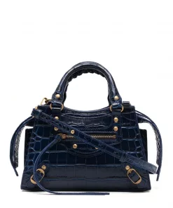 Effet peau de crocodile, finitions à boucle décorative, fermeture zippée sur le dessus, bride porté épaule détachable, anses arrondies, compartiment zippé sur le devant. Matière : cuir.