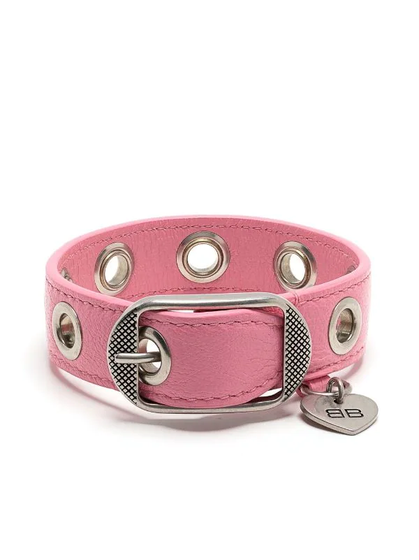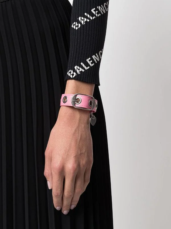 Rose, cuir, breloque à logo, finitions en métal argenté, taille ajustable.