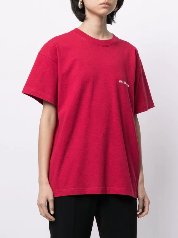 Logo imprimé à la poitrine, logo imprimé à l’arrière, encolure ras du cou, effet d’épaules descendues, manches courtes. Matière : coton.