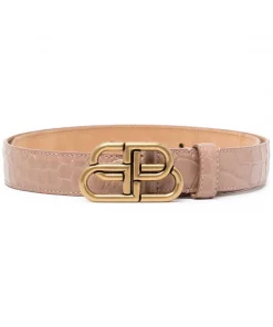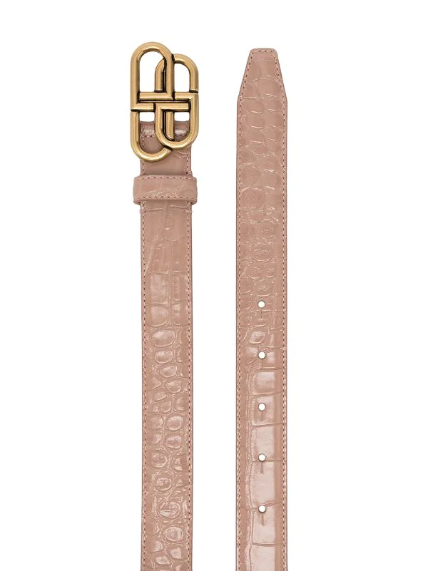 Effet peau de crocodile, détail de boucle à logo, taille ajustable. Matière : cuir.