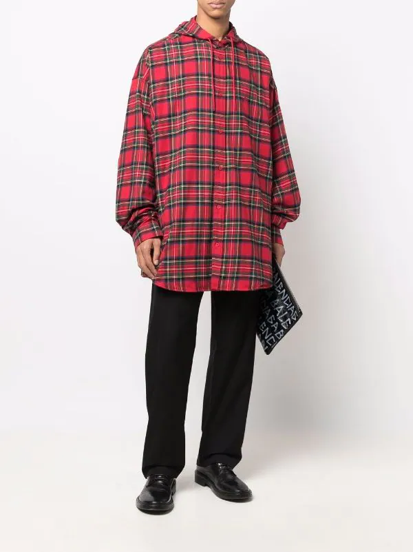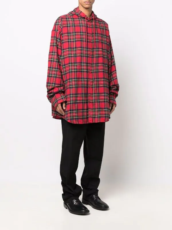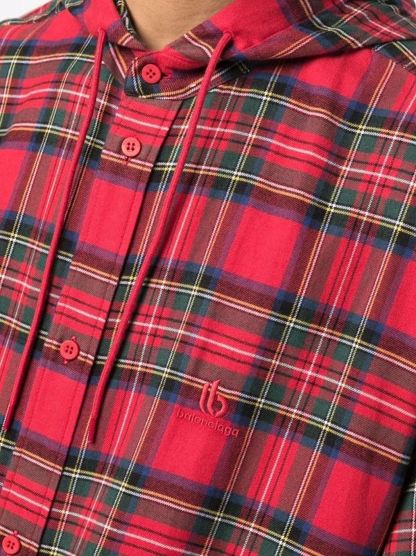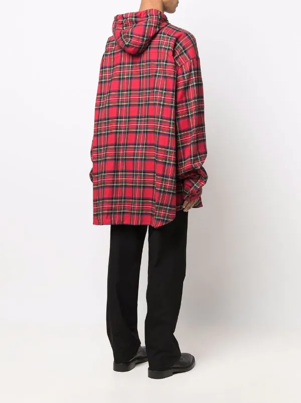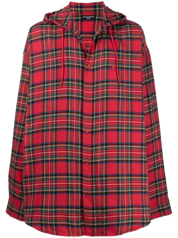 Carreaux, capuche à lien de resserrage, boutonnière sur le devant, ourlet incurvé, poignets boutonnés. Matière : coton.