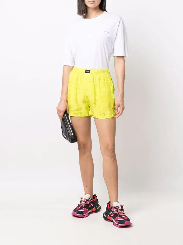 Patch logo sur le devant, ceinture élastique, coupe droite.