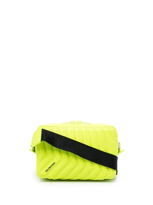 Jaune fluorescent, cuir, bride porté épaule ajustable, fermeture zippée à double sens, logo imprimé sur le côté.