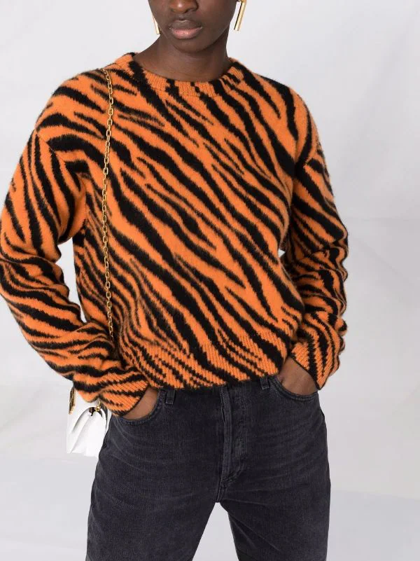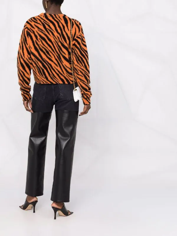 Imprimé tigre, design en maille, encolure ras du cou, épaules tombantes, manches longues, poignets nervurés, ourlet nervuré, coupe courte.