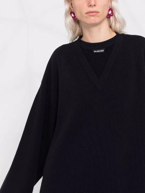Patch logo sur le devant, effet superposé, encolure ronde, manches longues, effet d’épaules descendues. Matière : laine.