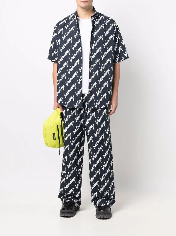 Imprimé monogrammé, ceinture élastique, deux poches latérales fendues.