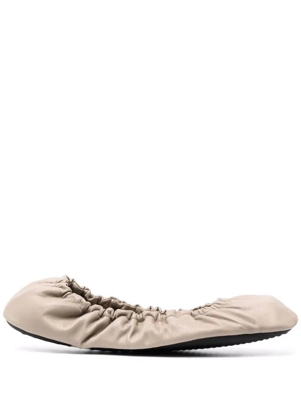 Bout carré, ourlet élastiqué, semelle intérieure à logo, semelle plate en caoutchouc. Matière : cuir.