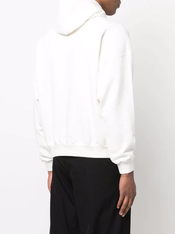 Imprimé graphique sur le devant, capuche classique, épaules tombantes, manches longues, poignets nervurés, poche plaquée sur le devant, ourlet nervuré. Couleur : blanc. Matière : coton.