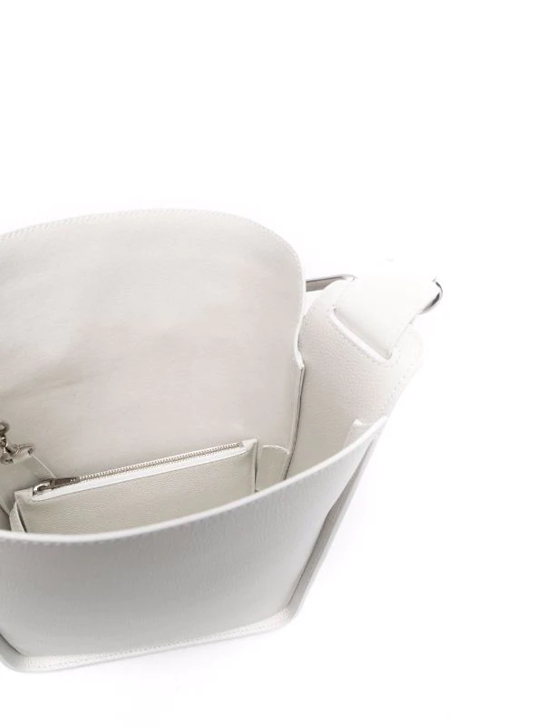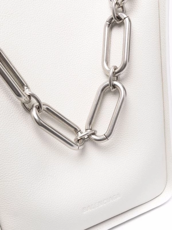 Finitions en métal argenté, compartiment principal, bride porté épaule en chaîne, poche intérieure zippée. Matière : cuir.